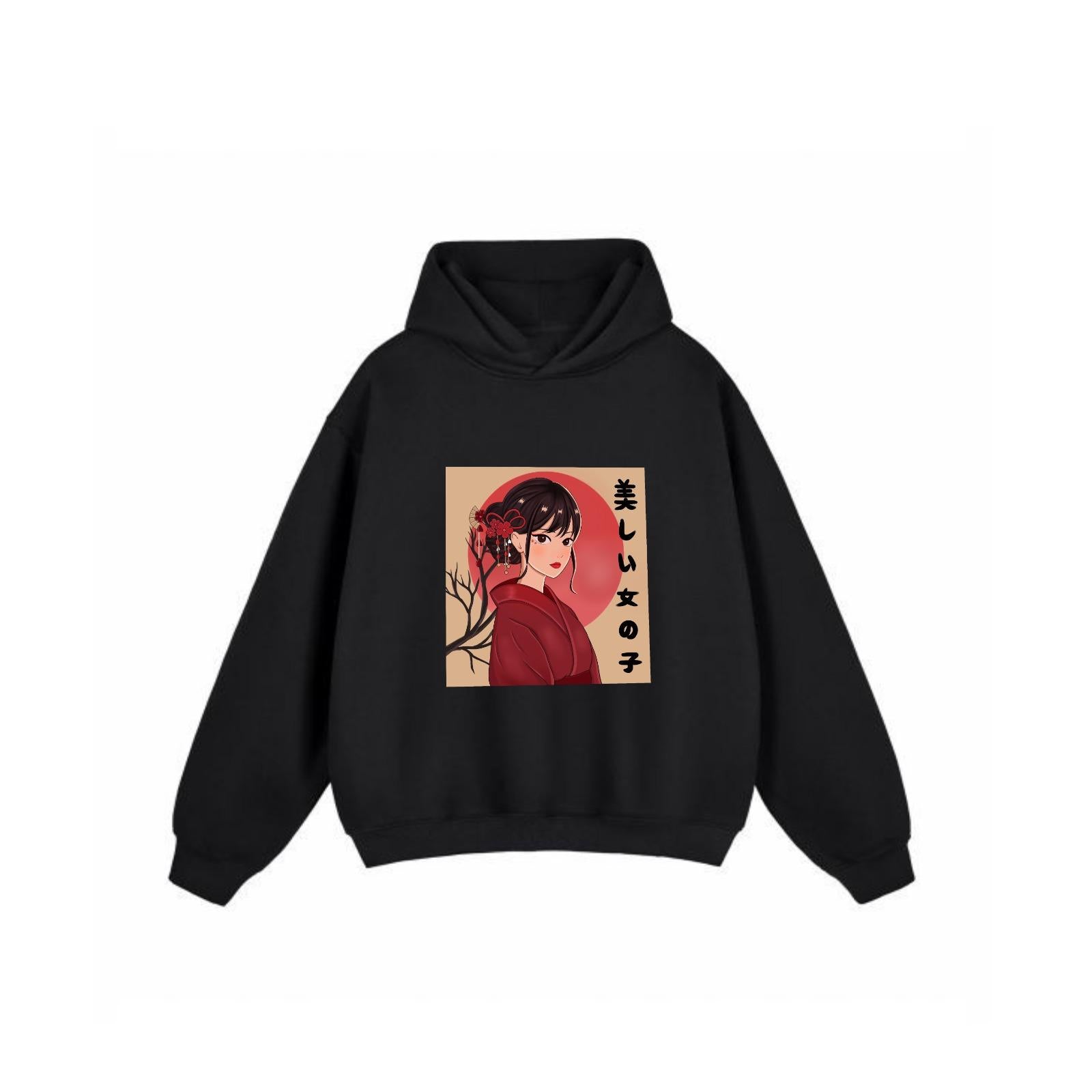 Embrace the winter chill in style with our striking black hoodie featuring a unique print of a Japanese girl in traditional attire. The intricate design captures the essence of Japan's serene beauty, perfect for anyone who loves cultural fusion and standout fashion. Warm, cozy, and packed with detail—this hoodie is a winter wardrobe essential.